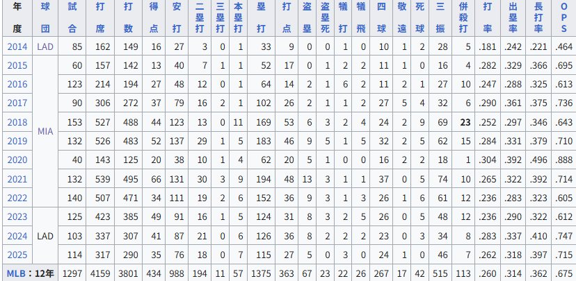 ロハス、HRを10本以上打ったことは1年しかない。3割超えたのも1年だけ。