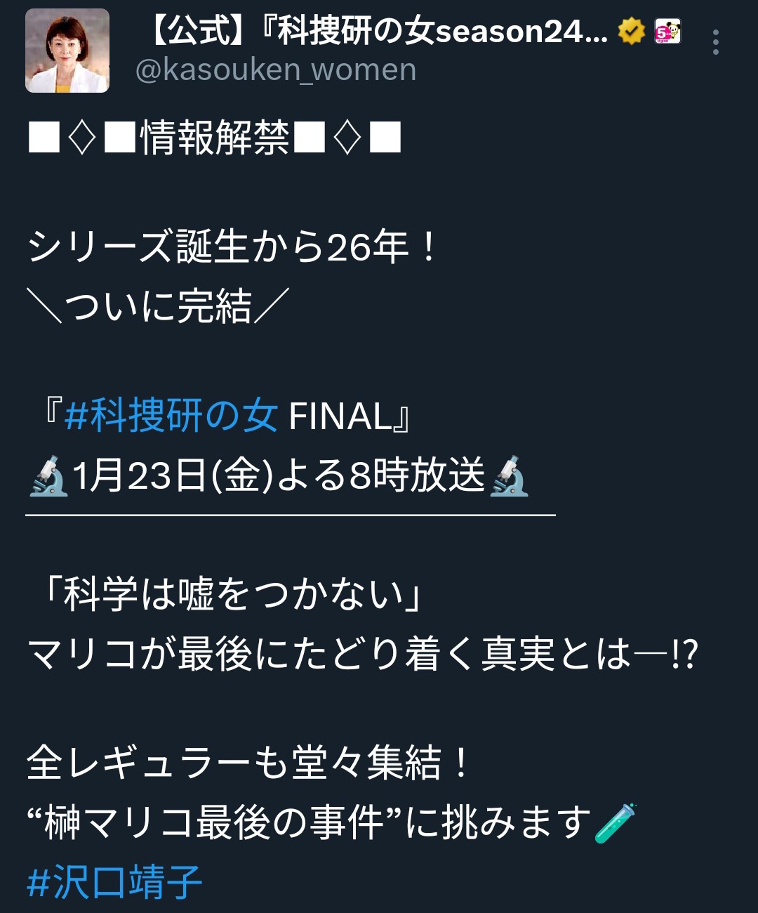 科捜研ラストなのかあ