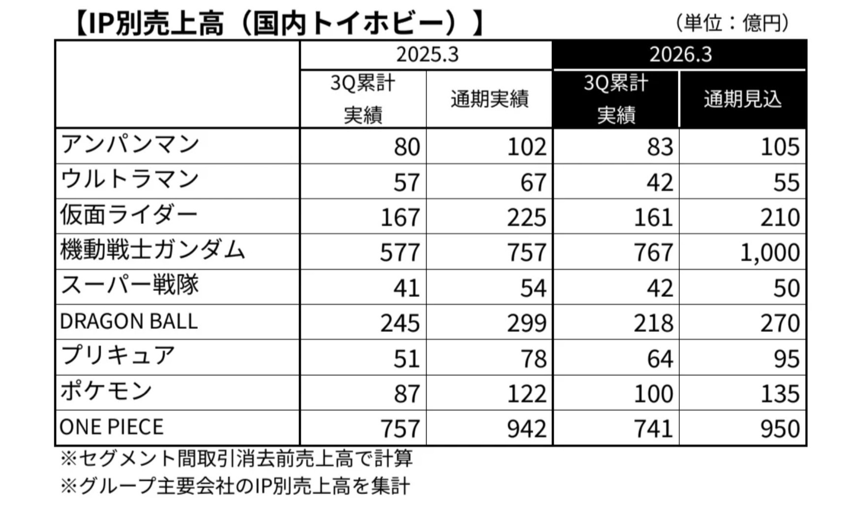 バンダイナムコHDの2025年度3Q決算が発表
