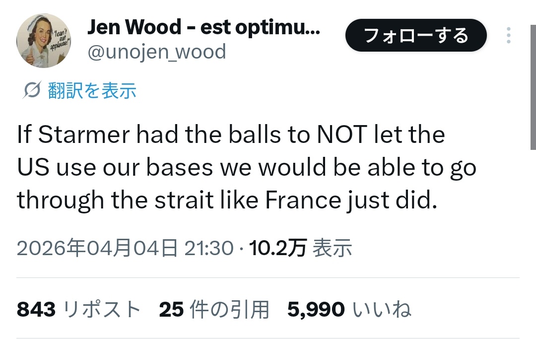 フランスのように我々(イギリスの船)もその(ホルムズ)海峡を通れるのに。」