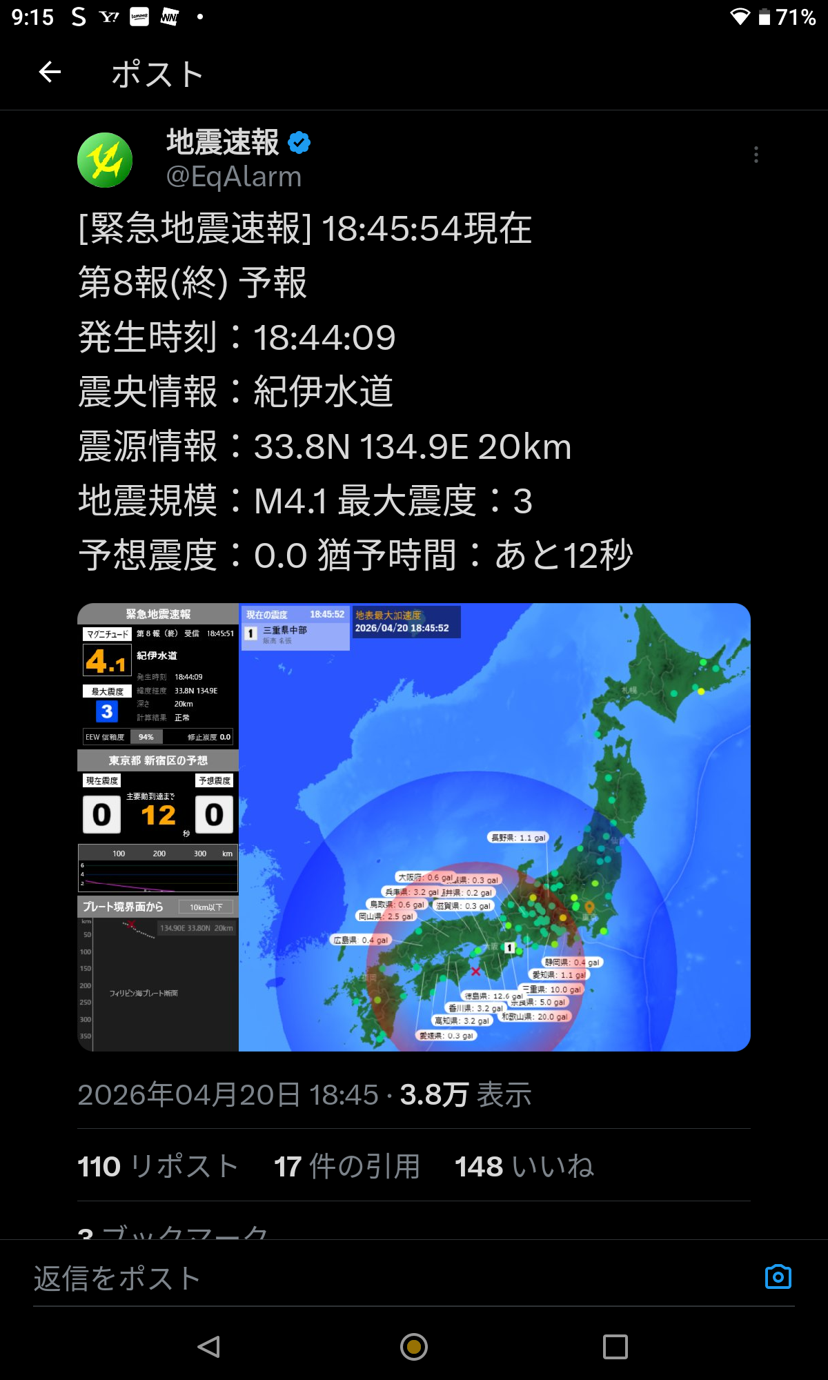 なぎげに、紀伊水道の地震が気になる…