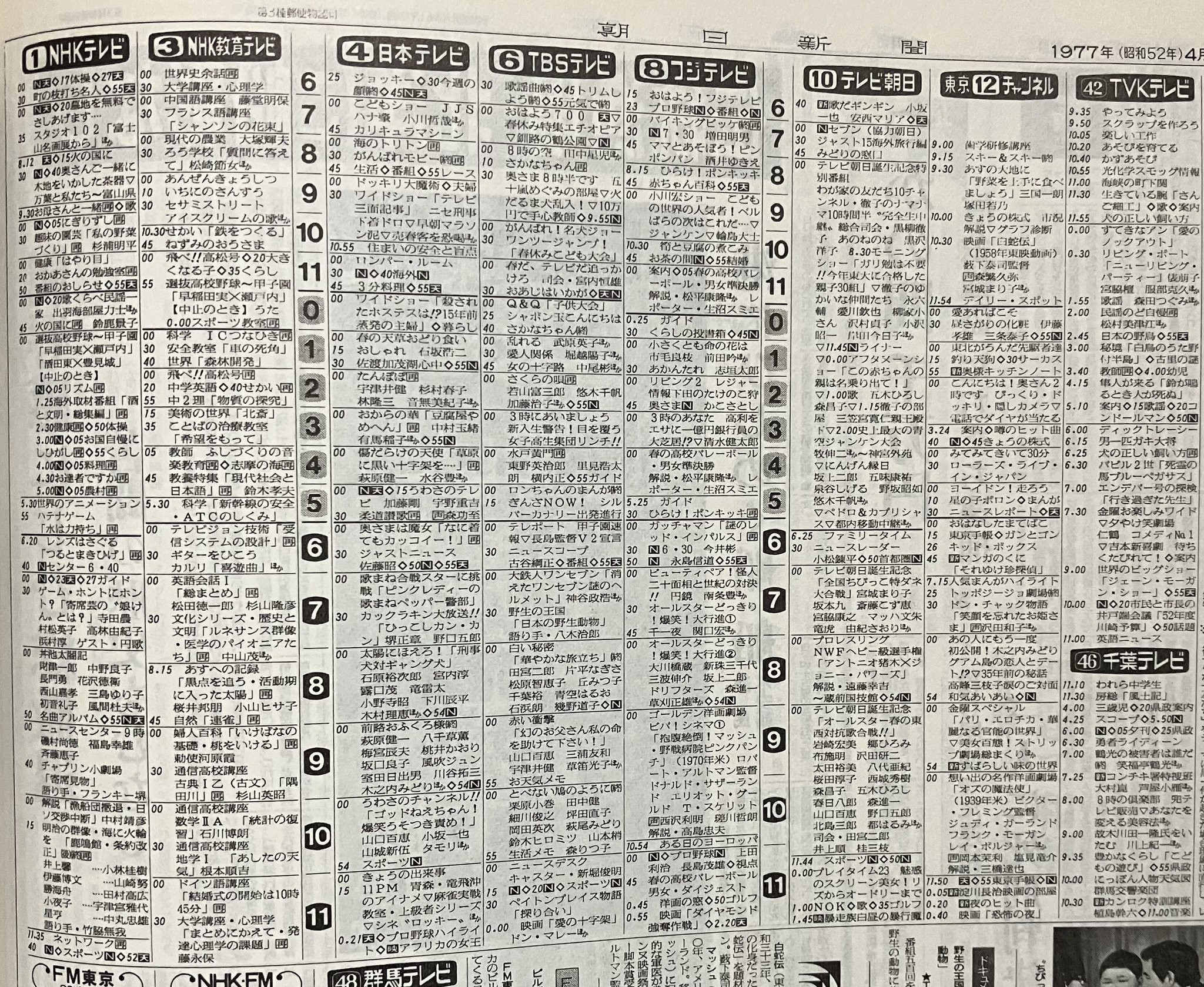 1977年のテレビ番組表