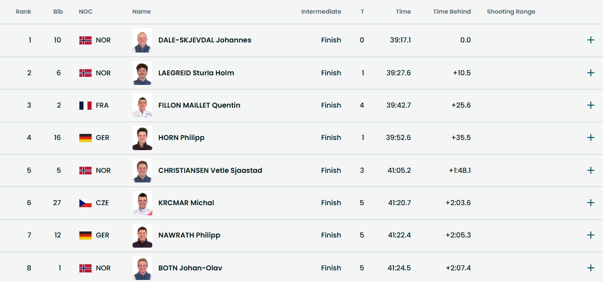 バイアスロン 男子マススタート 成績