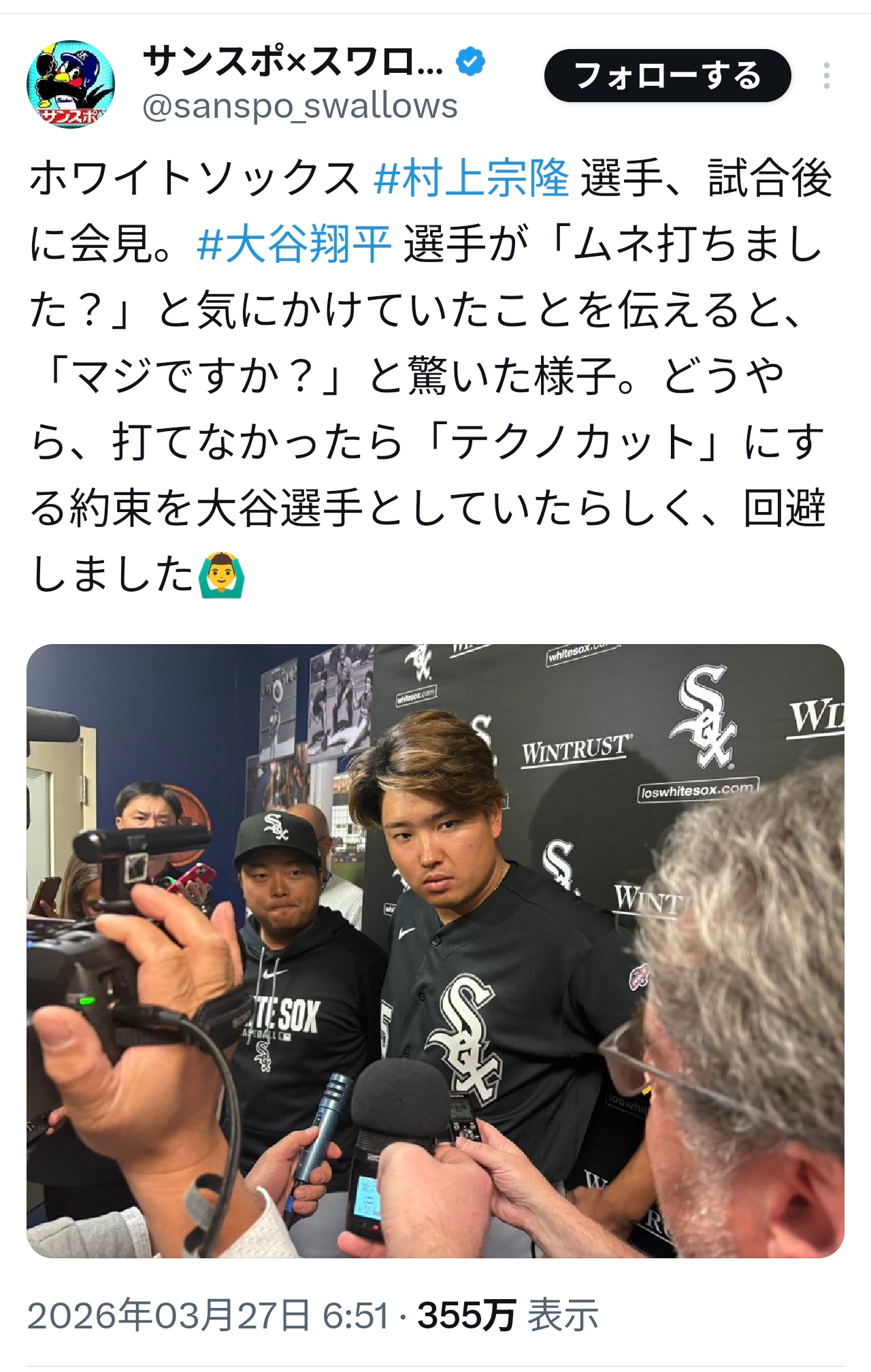 大谷「ムネうちました???」