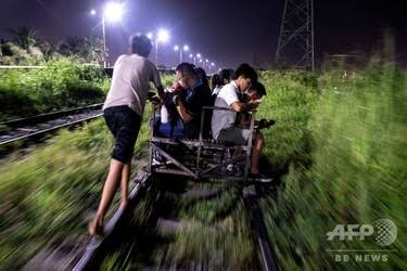 フィリピンは線路に勝手に手動トロッコ走らせて