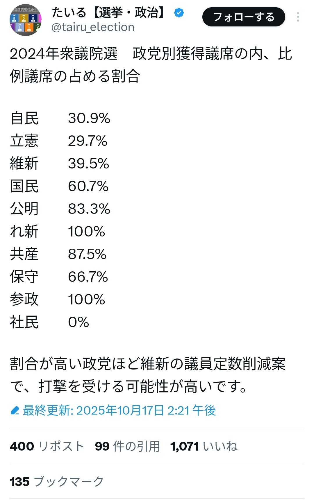 議員定数削減で不利になる政党