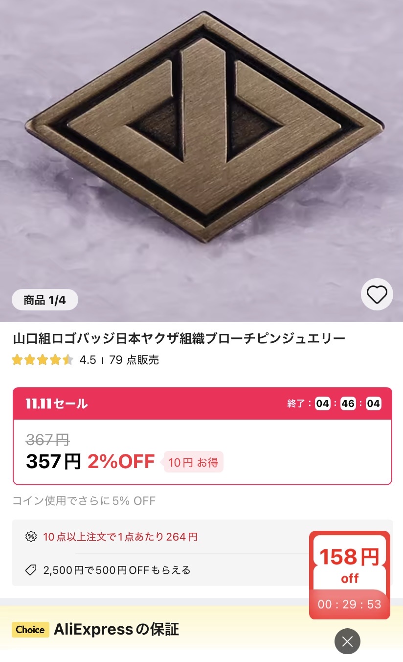 中国の通販サイトで売られてる山口組バッジ