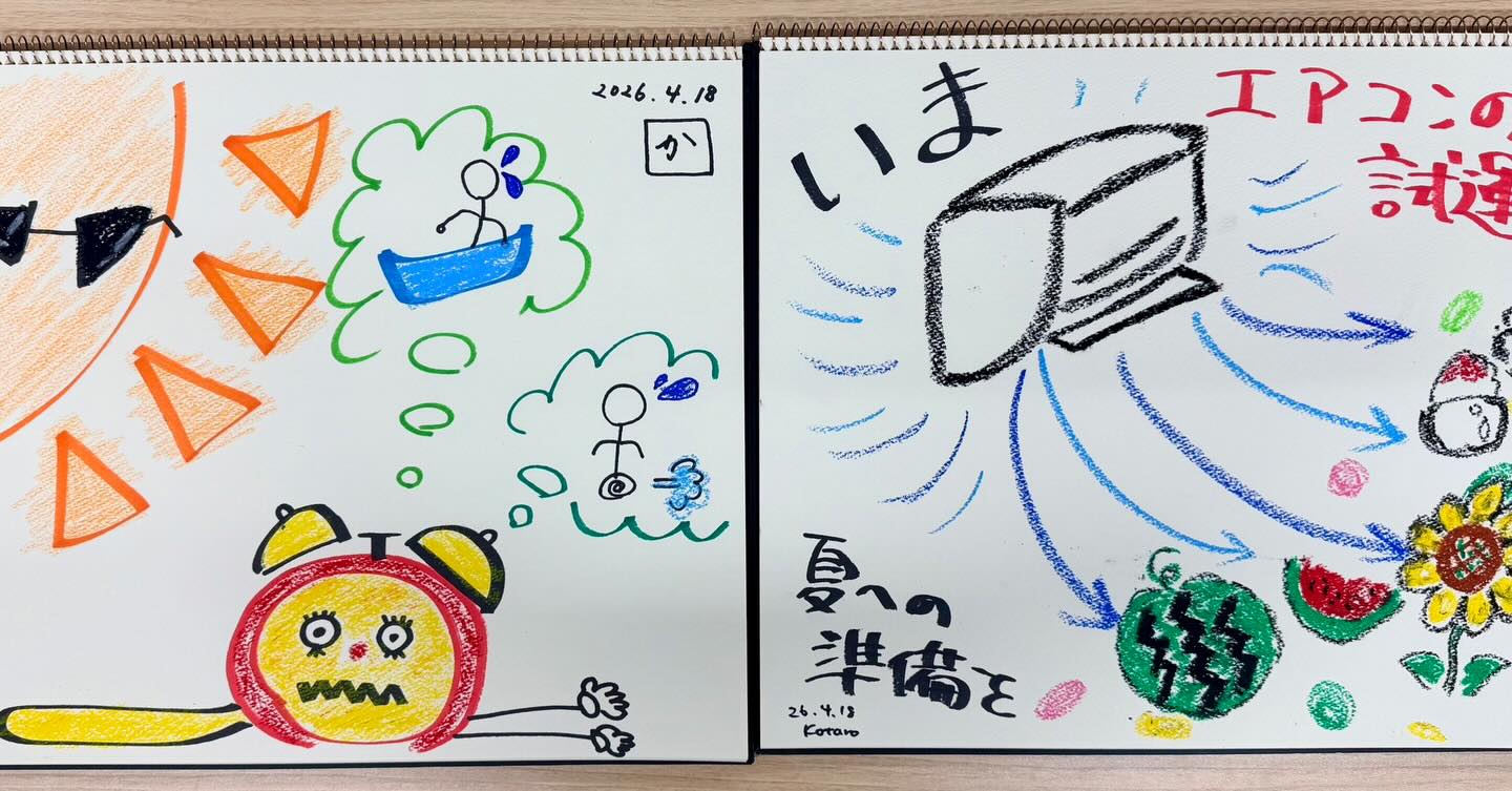上垣画伯はエアコンの試運転を!どちらも夏本番前にやっておきましょう。