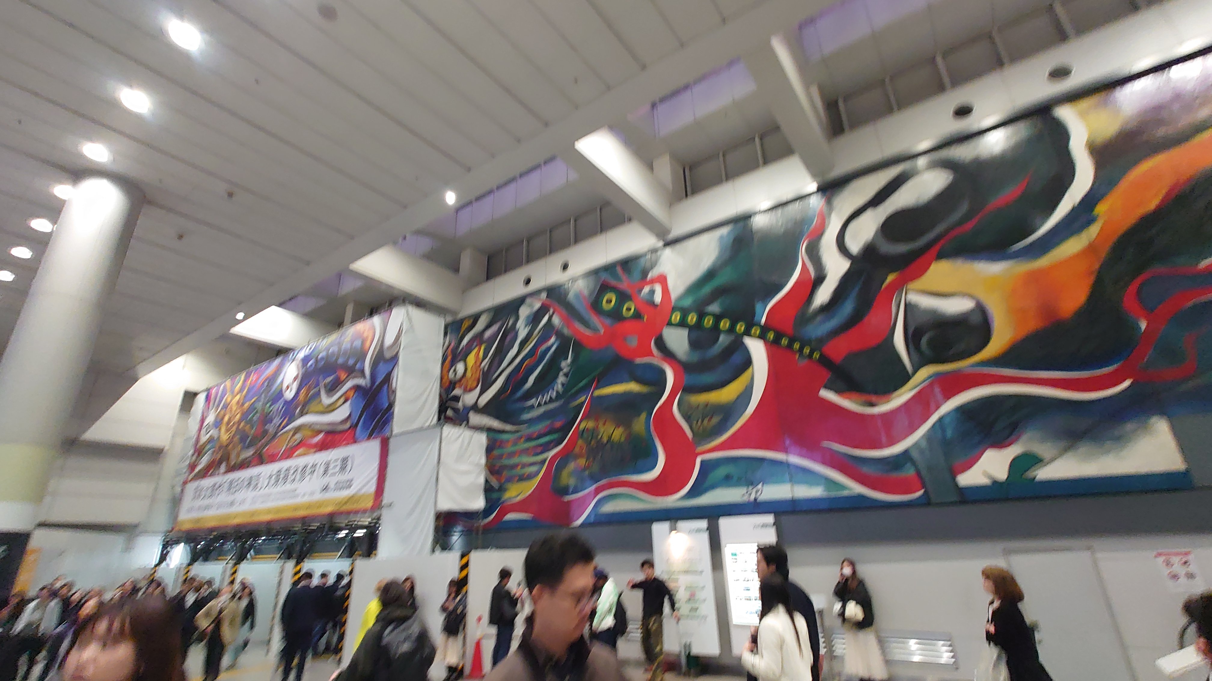 明日の神話、今は修復してて足場にタローマンの絵がかけられてる