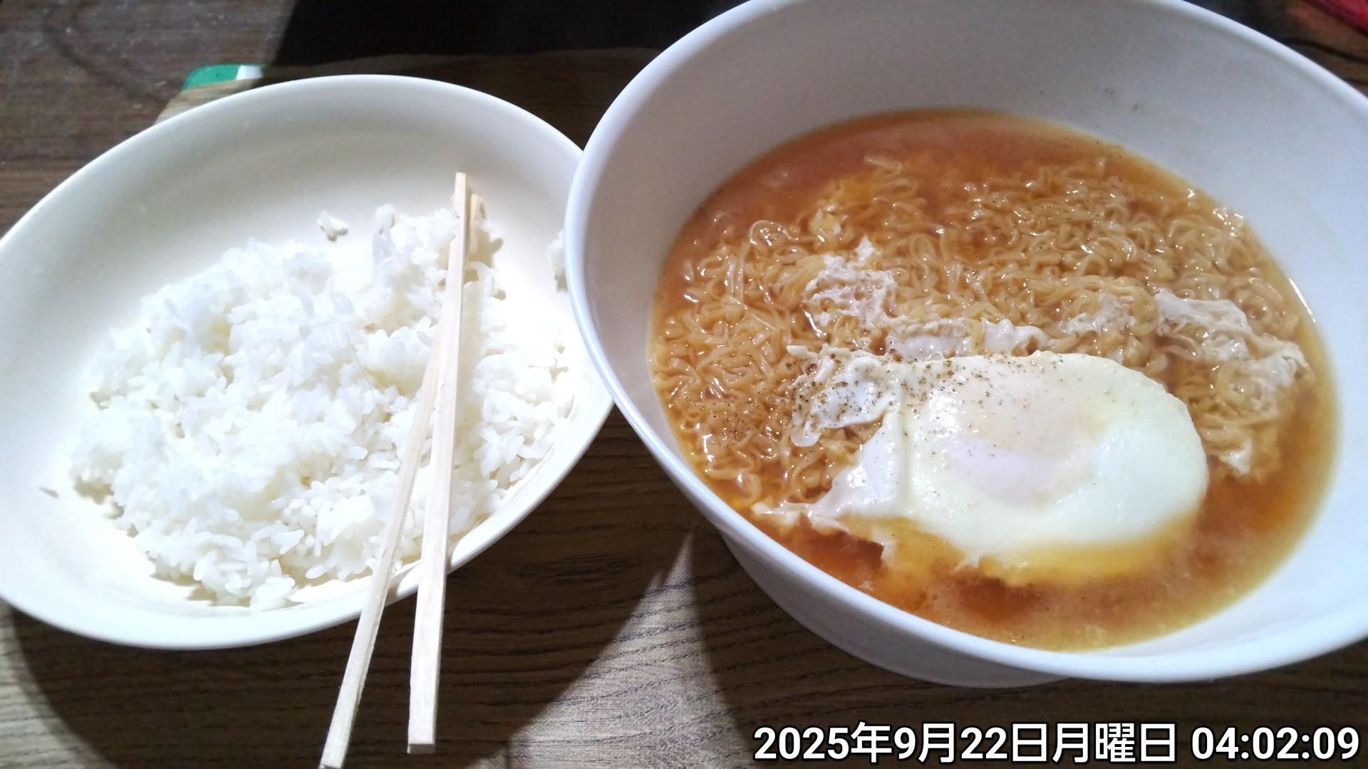 朝から、チキンラーメンか・・・(´・ω・`)