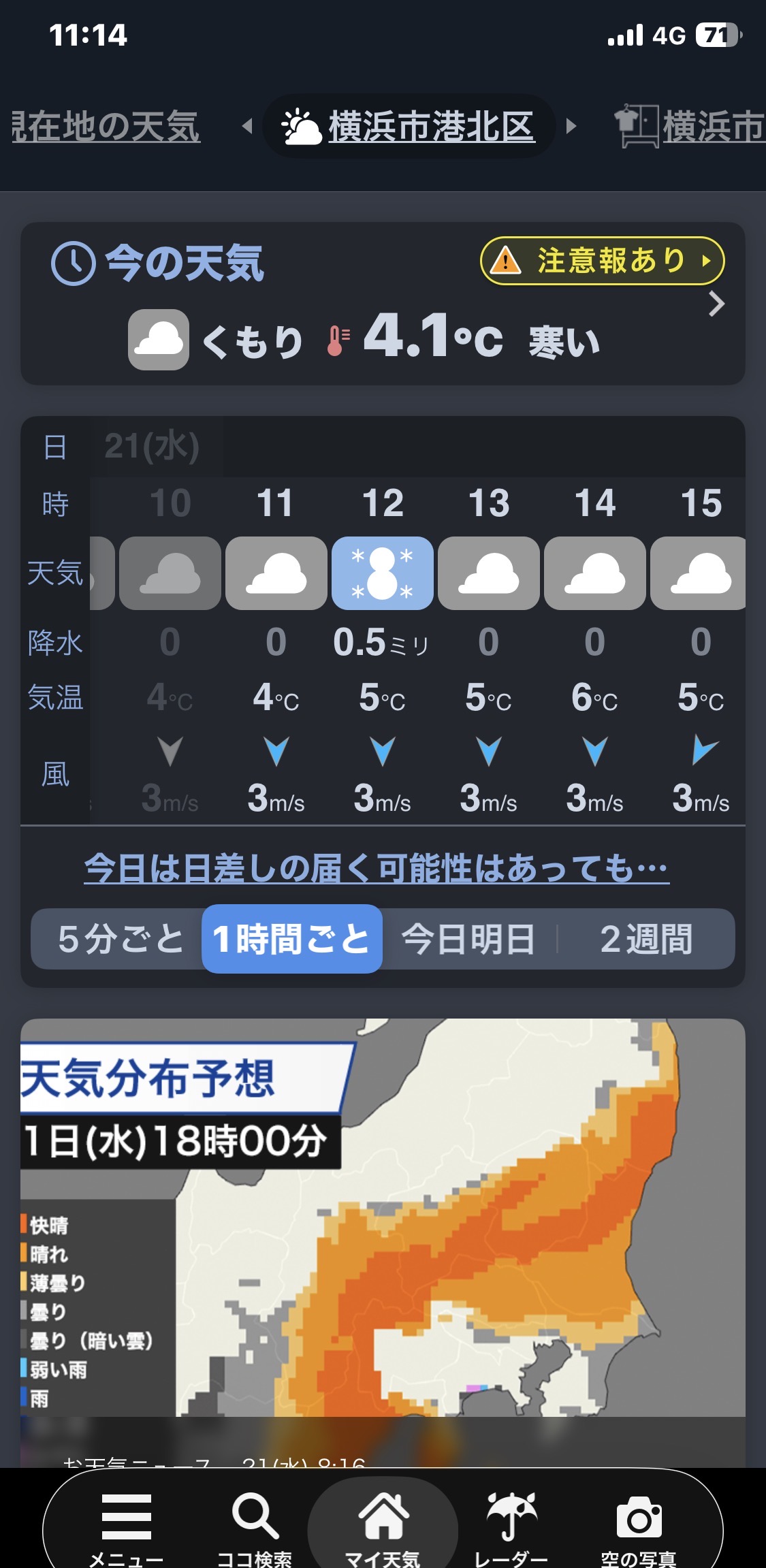 なんか横浜市港北区雪降るみたい