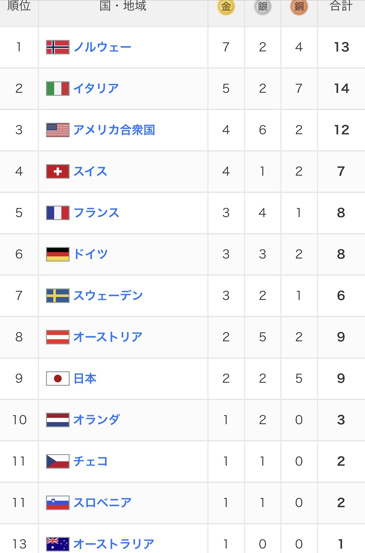 メダルランキング