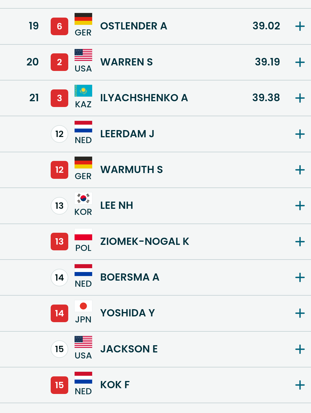 残りの滑走者