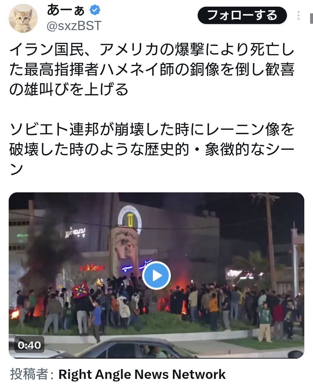 - 11:公共放送名無しさん ID:VLxqn0Yrイラン国民、最高指揮者ハメネイ師の銅像を倒し歓喜の雄叫びを上げる [662593167]