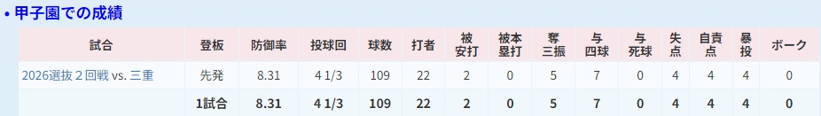 桐蔭の今日の先発投手の成績