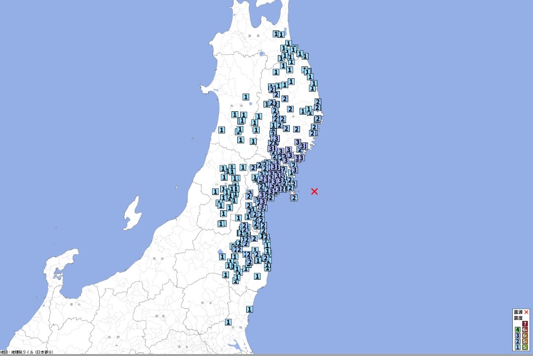 震源地 宮城県沖