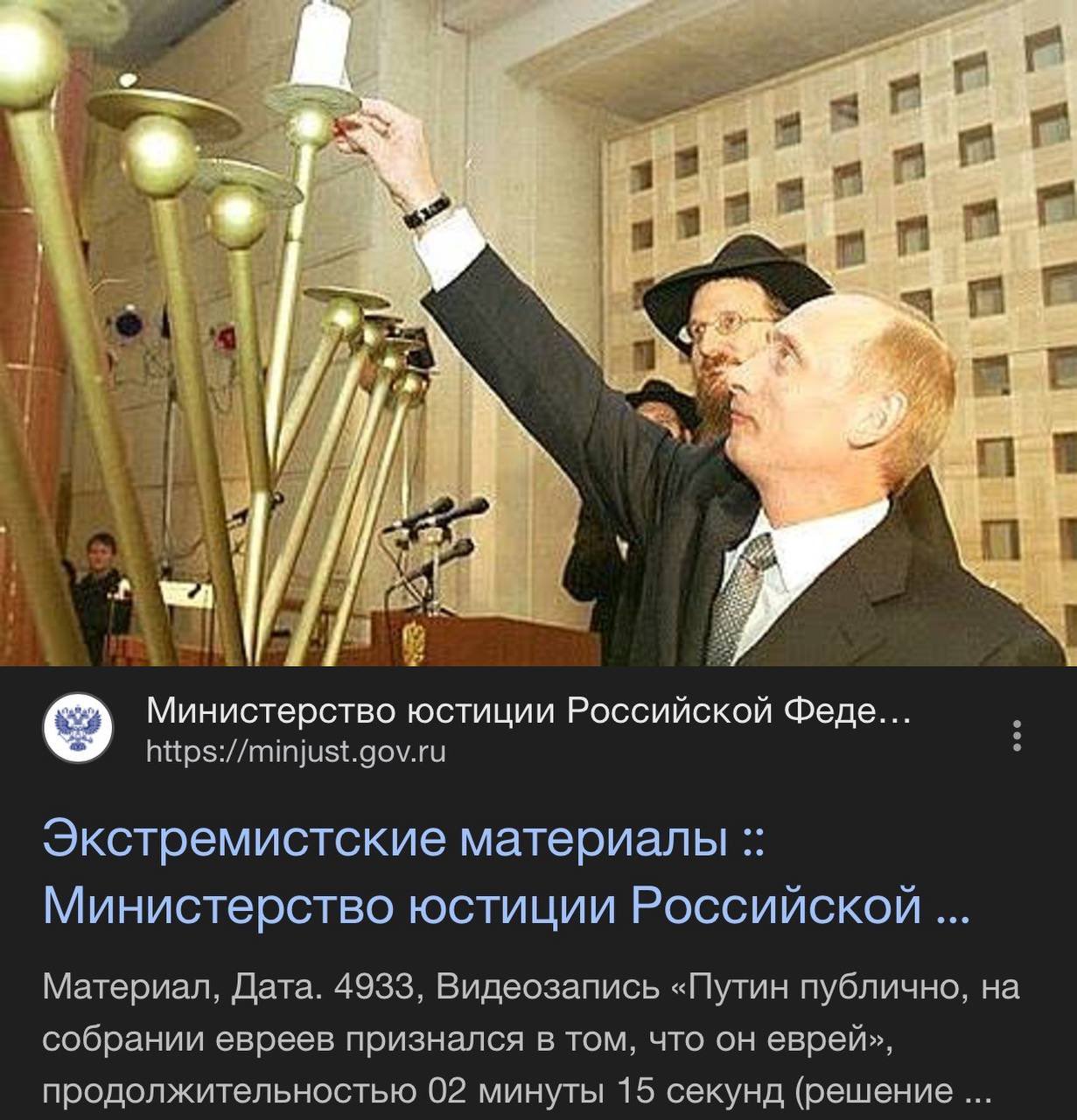 「プーチン大統領がネタニヤフ首相とチャバドのラビたちと共にメノーラを灯す2分15秒のビデオは、極端主義的素材である」