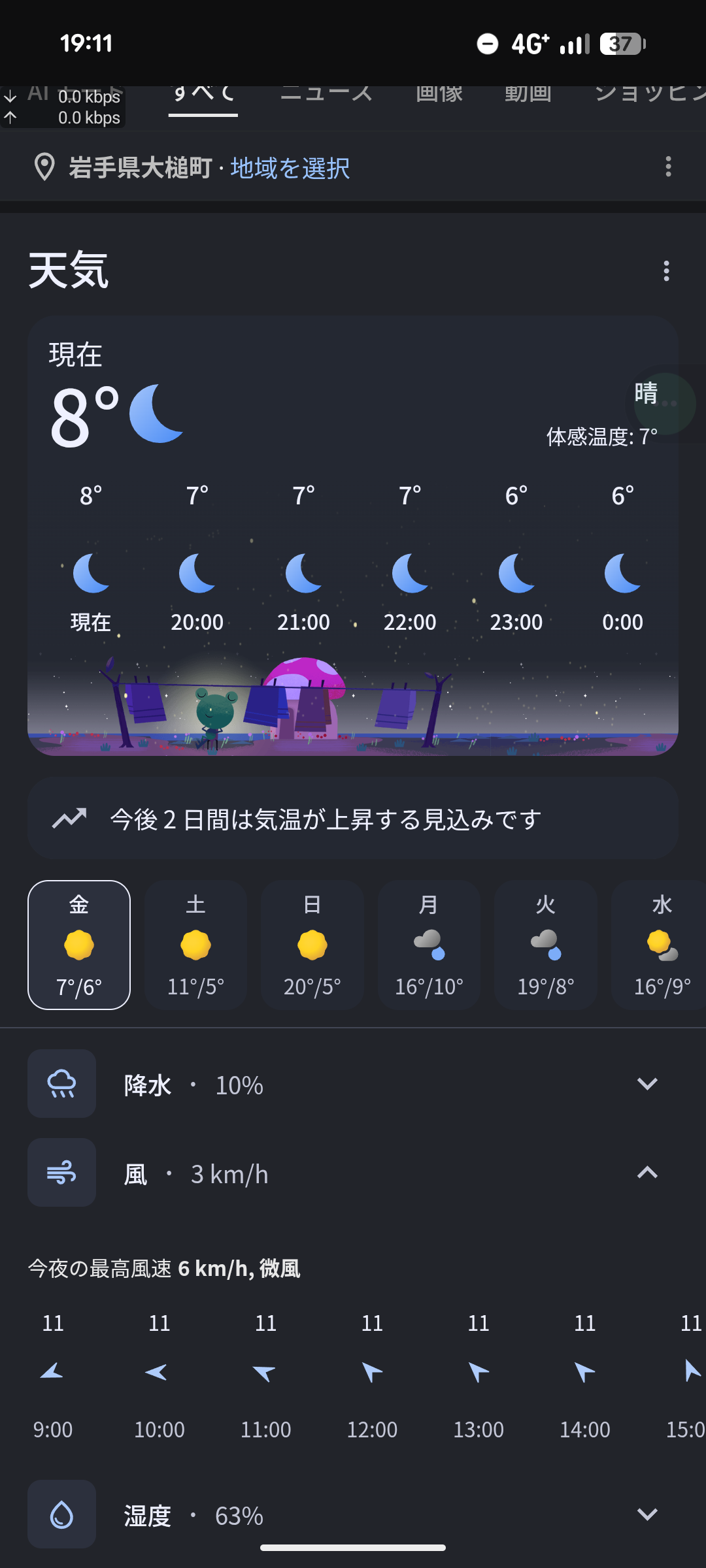 大槌の天気確認したら明日の風速11mだわ