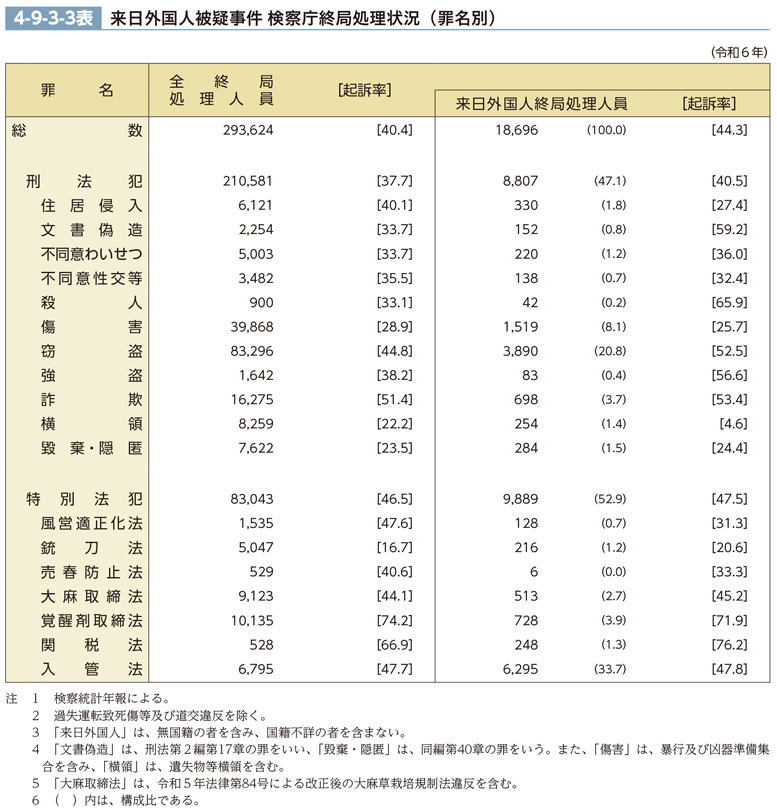 来日外国人被疑事件 検察庁終局処理状況(罪名別)