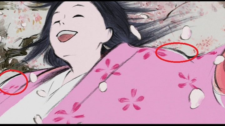 「かぐや姫の物語」は田辺修さんが設計したスケッチ風の絵を動かしています。線がかすれているので従来のデジタルペイントで色を塗ることはできないので、塗線動画(画像2)を基に色を指定し(画像3)、それにスケッチ風の動画(画像4)を重ねて完成画(画像1)になります。#かぐや姫の物語