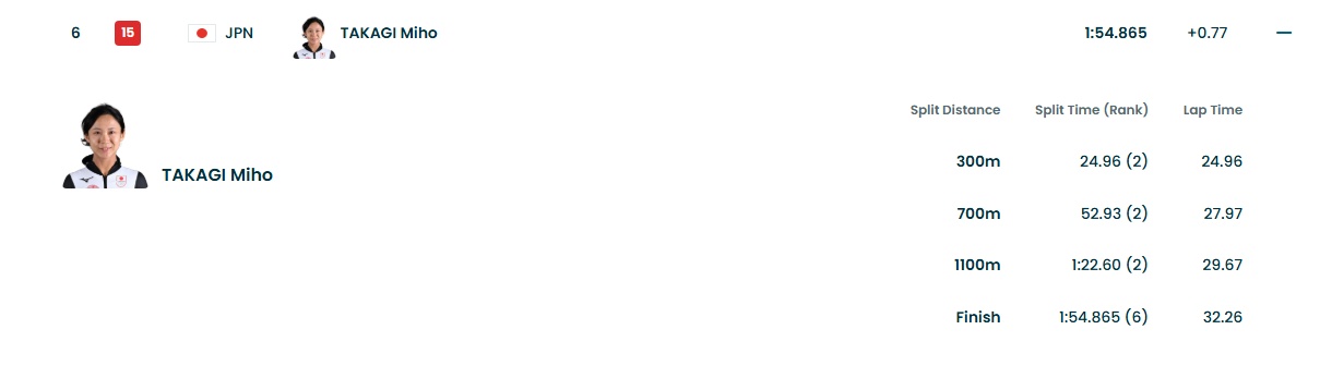 高木美帆のタイム推移