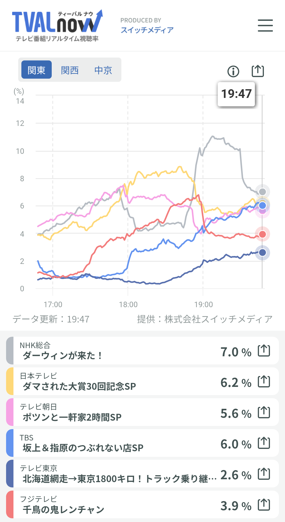 視聴率は各局低迷だな