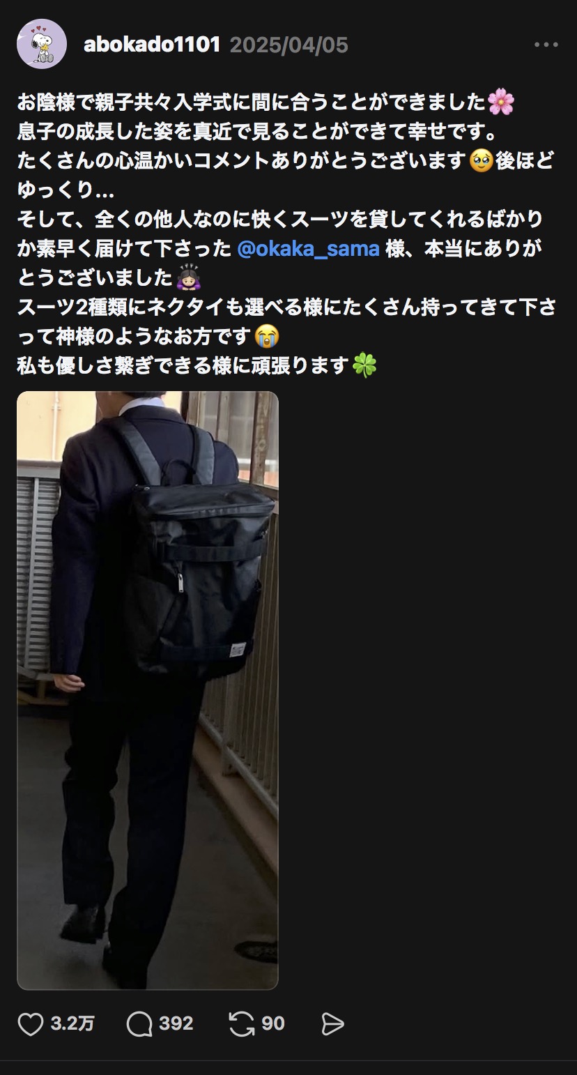 スーツ借りた人の投稿に3万いいねついてた
