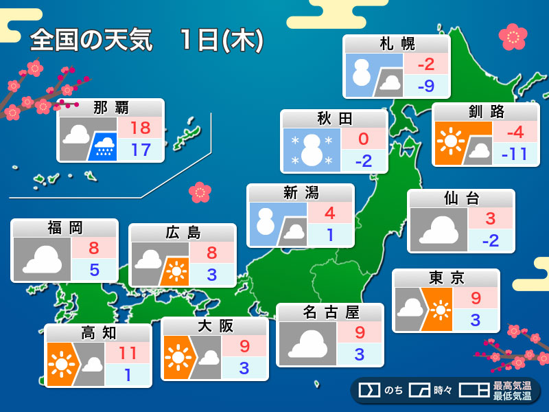 明日1月1日(木)元日の天気予報