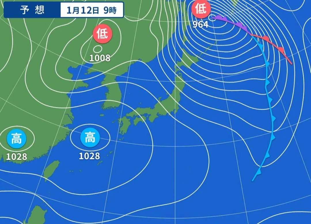 低気圧は964ヘクトパスカル、これは「大型で強い」台風レベルです