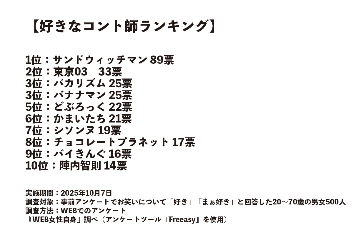 「好きなコント師」ランキング!