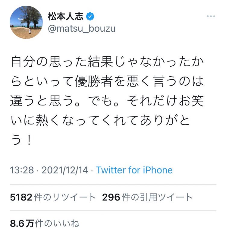 お笑い有識者「自分の思った結果じゃなかったからといって優勝者を悪く言うのは違うと思う」