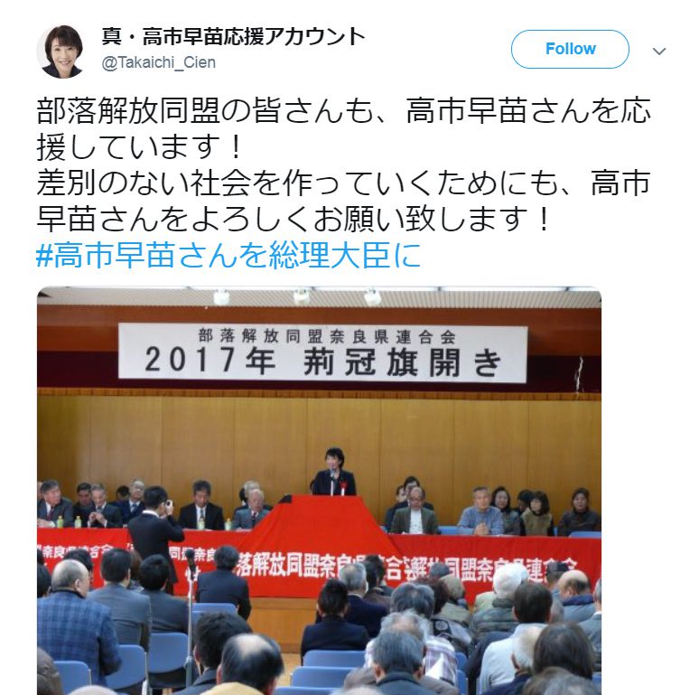 高市は同和・部落解放からも応援されてるww
