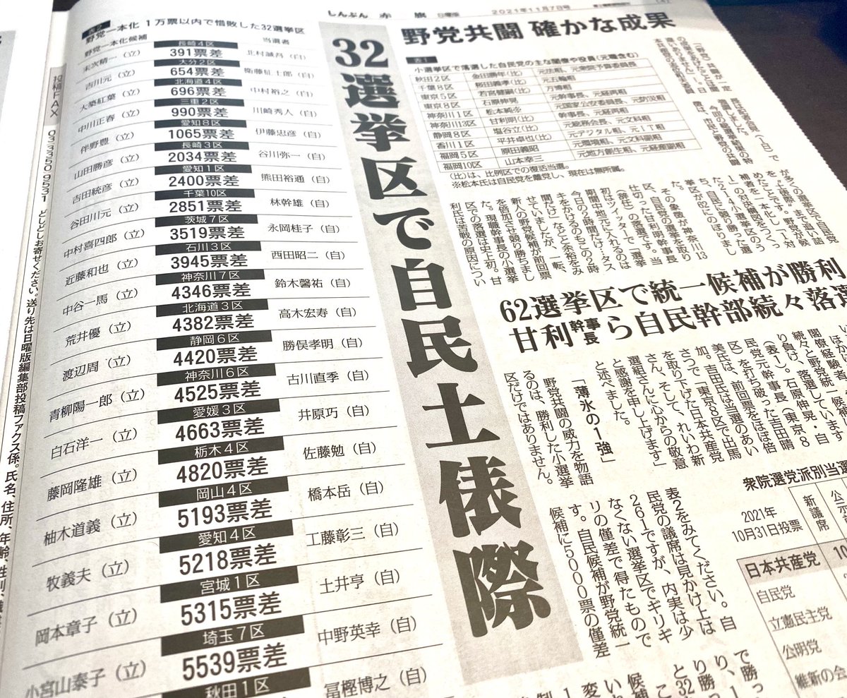 この時は負けは負けとはいえ、これだけ接戦を演じた選挙区があるのだから