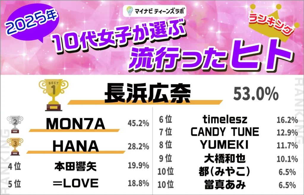 > 2025年に10代女子の間で流行ったヒトのランキング
