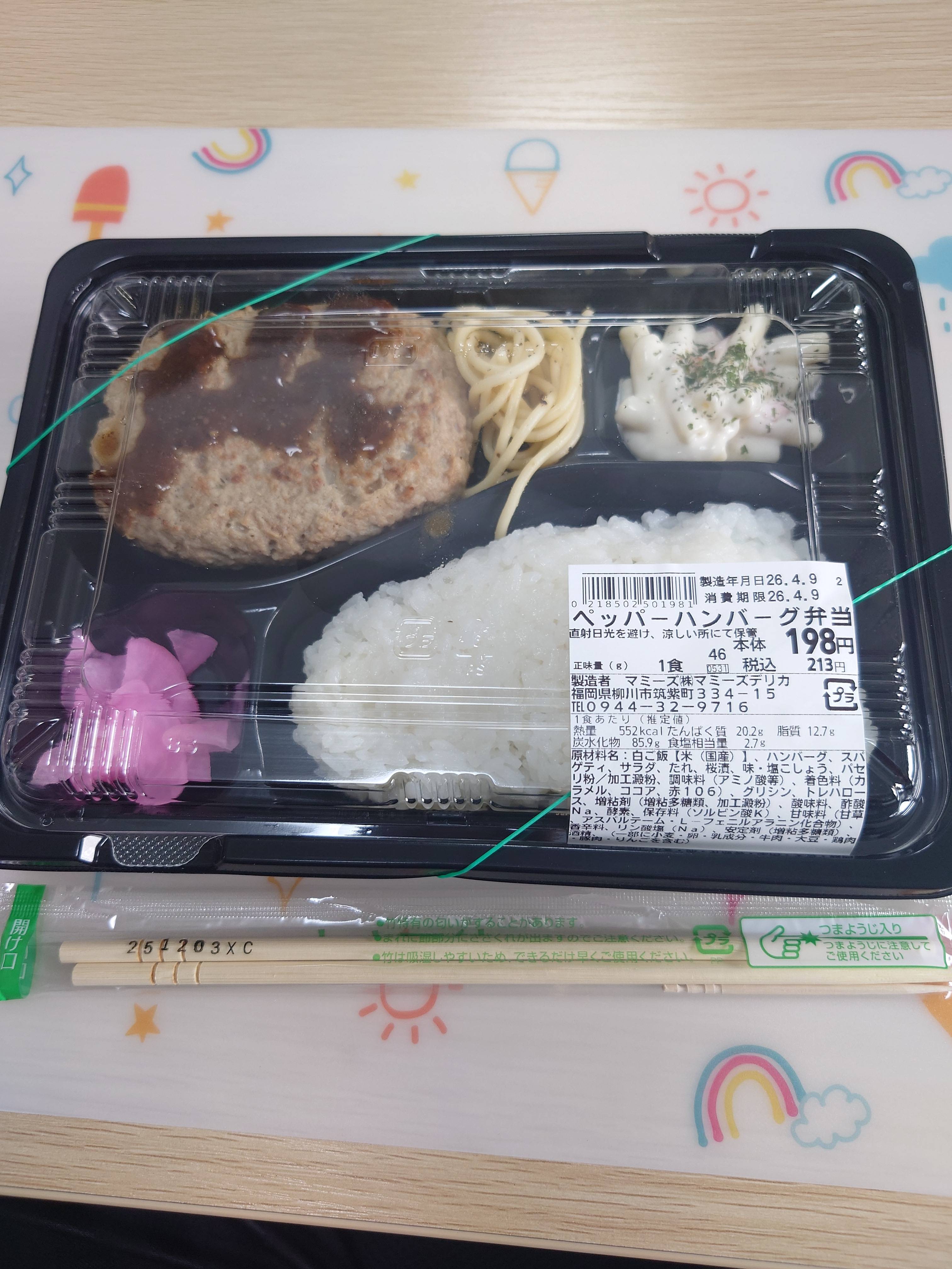 外食でもかわいいランチョンマット使いなさいよ(´・ω・`)