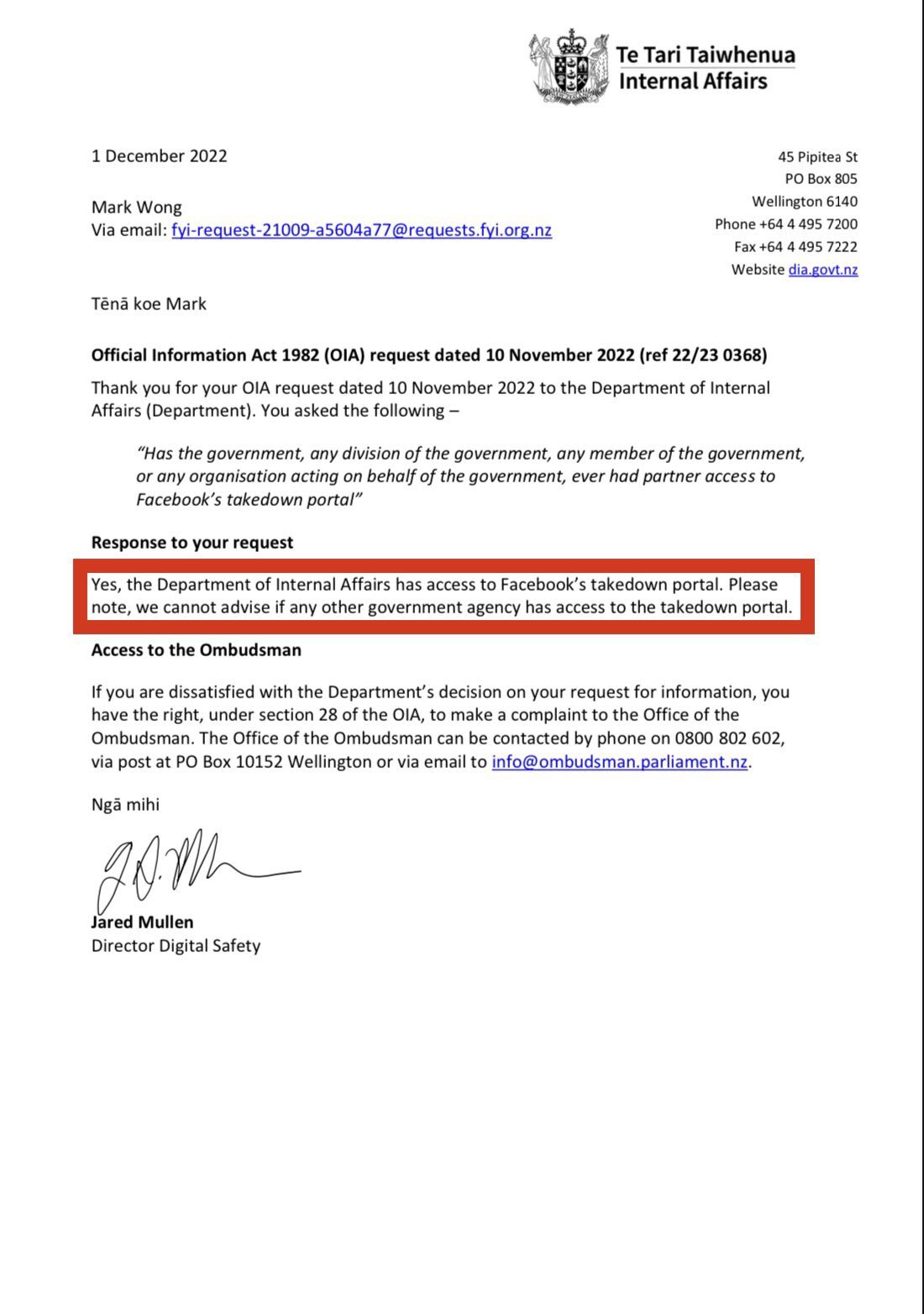 ニュージーランド内務省がFBのテイクダウンポータルへのアクセス権を持っていることが判明。テイクダウンの意味は警察による手入れや逮捕で、ここでの目的は検閲。NZ政府もSNSを使って言論統制しているということだ。