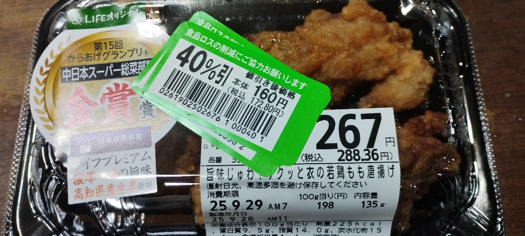 ワシはライフで買うて来た唐揚げや(´;ω;`)