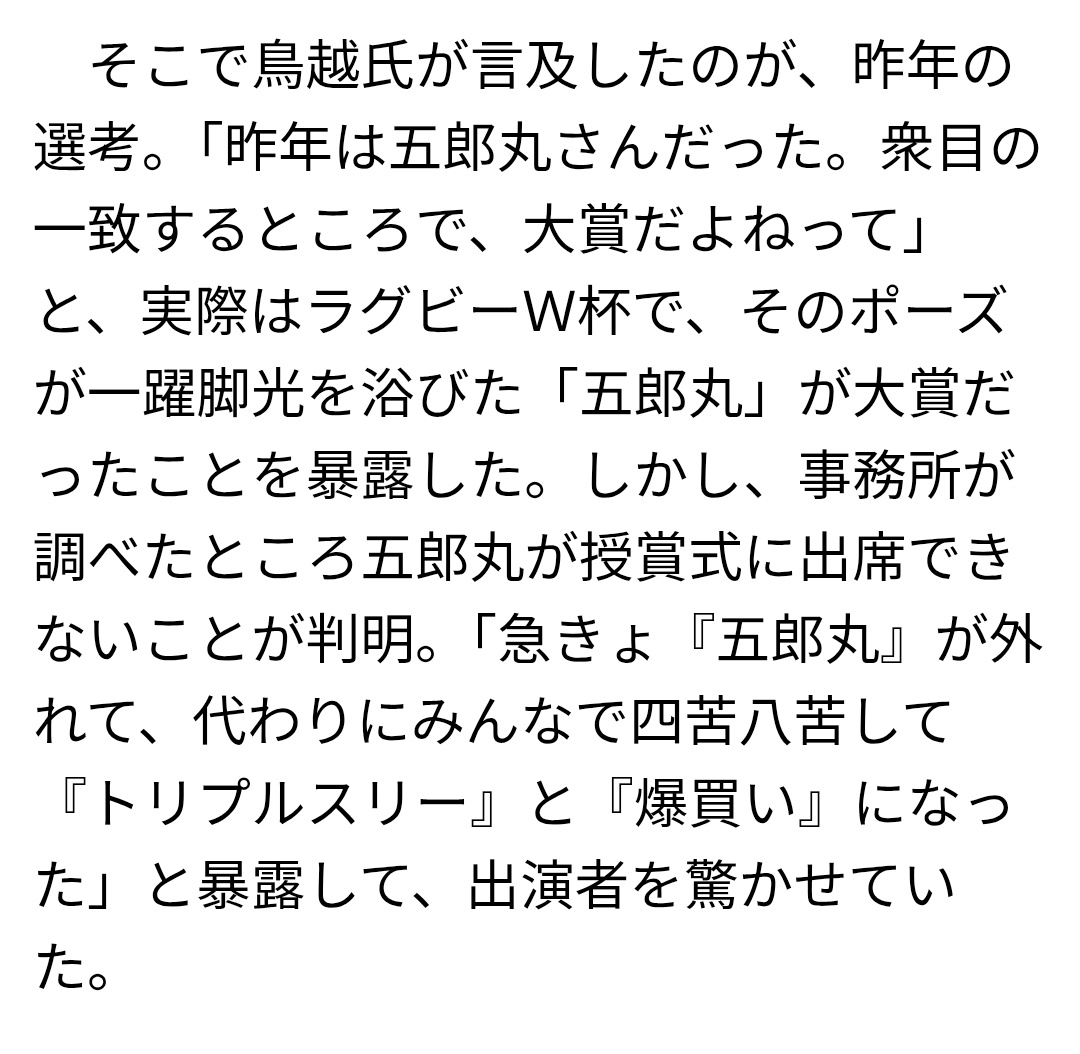 今年はもう一つ大きな賞貰えるんでってネタバレしたどん様(´・ω・`)