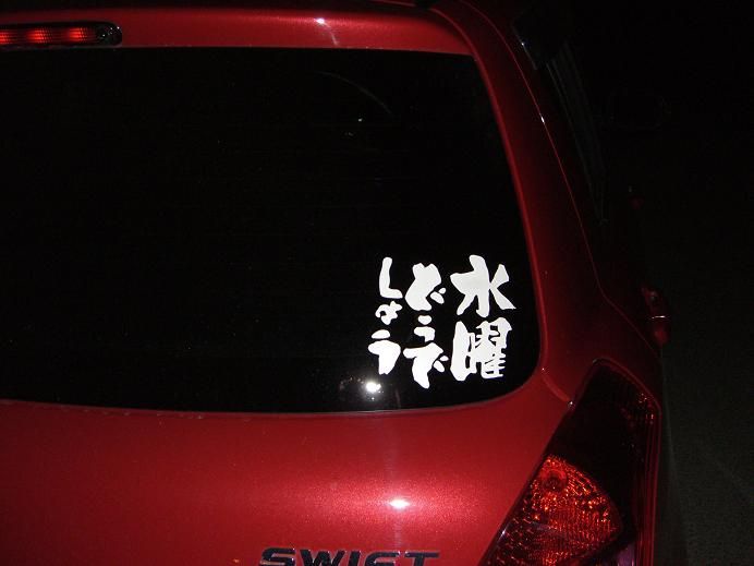 ストフェスの時にファミマの駐車場に止まってた旧車に水曜どうでしょうとテレビのツボステッカーが並んで貼られてた