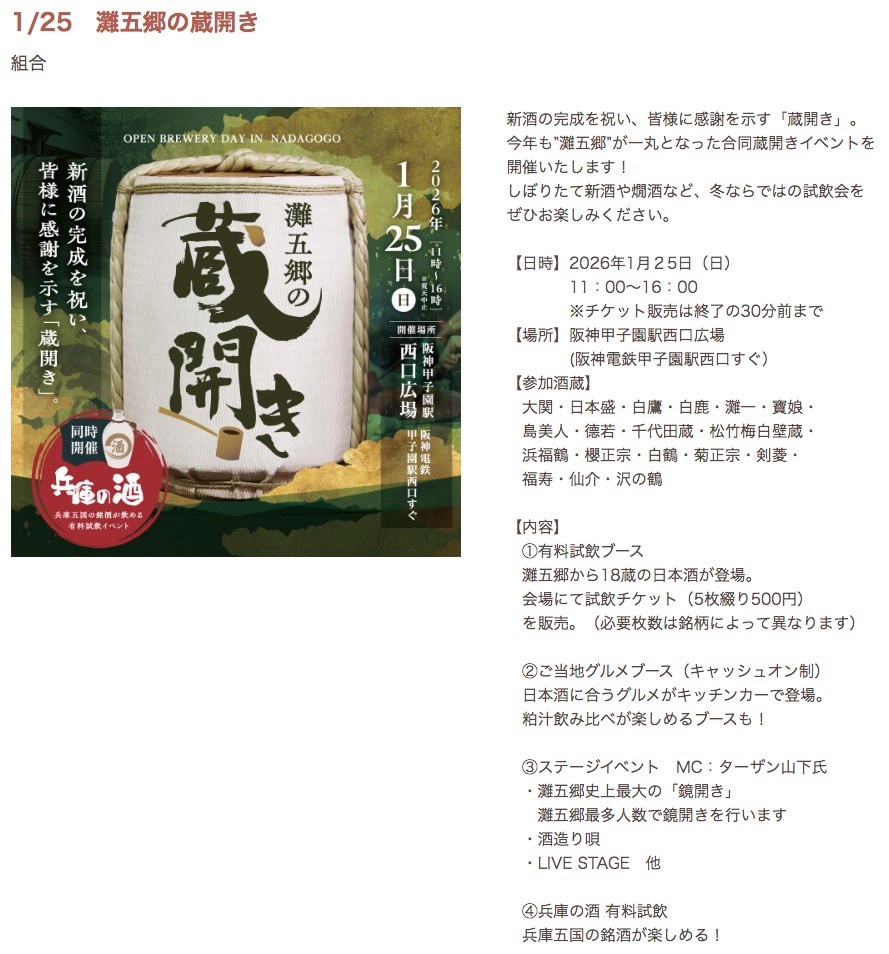 1月25日に甲子園球場で灘五郷のイベントあるで