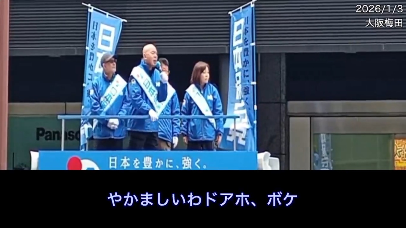 - 4:LIVEの名無しさん ID:+dA48uWA日本保守党の百田代表が大阪街宣で、野次で「救急車来てるぞバカ」と言われ「やかましいわドアホ、ボケ」と応酬。