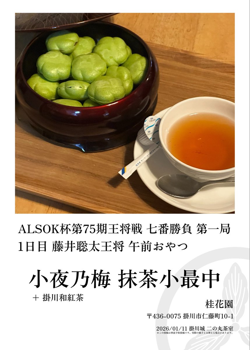 藤井王将:小夜乃梅抹茶小最中、掛川和紅茶