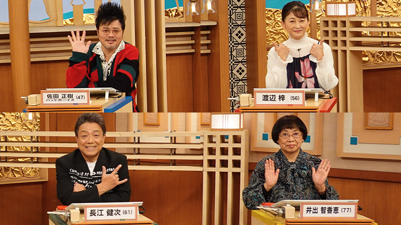 佐田正樹(47) 渡辺梓(56) 長江健次(61) 井出智香恵(77)