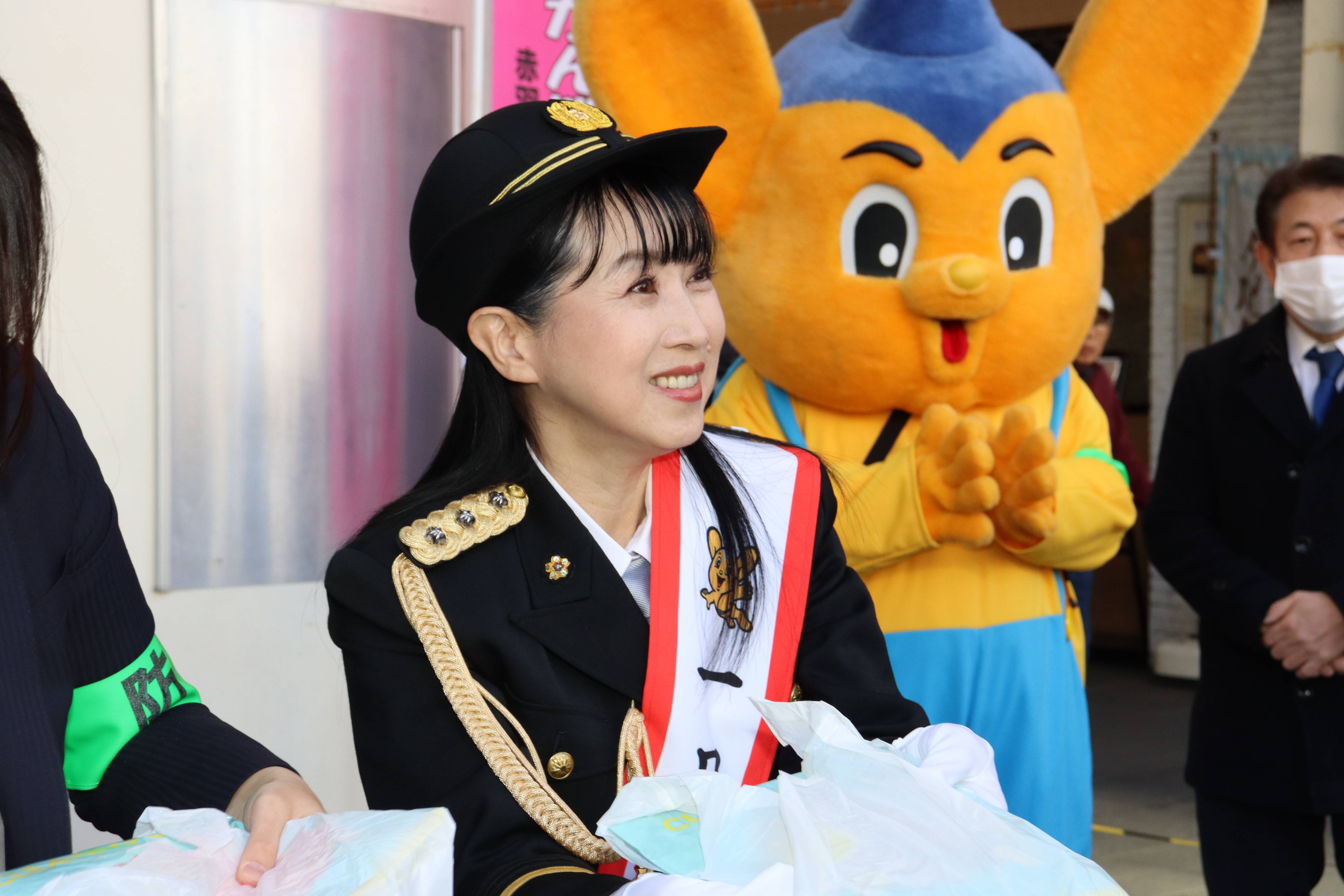 西村知美、警視庁赤羽署の一日署長に就任 赤羽駅前で痴漢撲滅を訴える