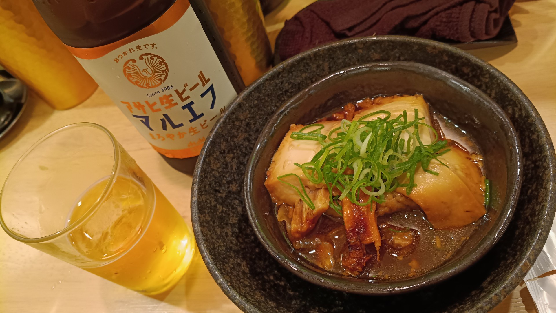 マルエフ400円、アラと豆腐の煮付け200円