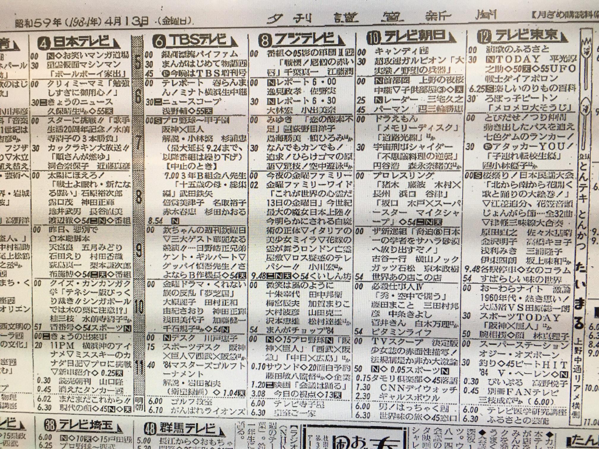 当日のテレビ欄(読売新聞夕刊)