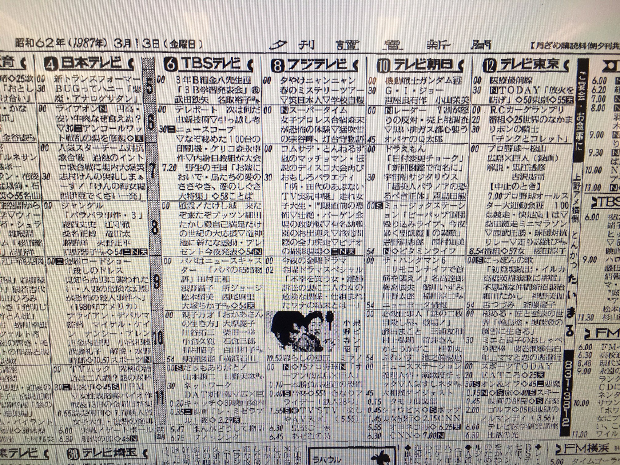 当日のテレビ欄(読売新聞夕刊)