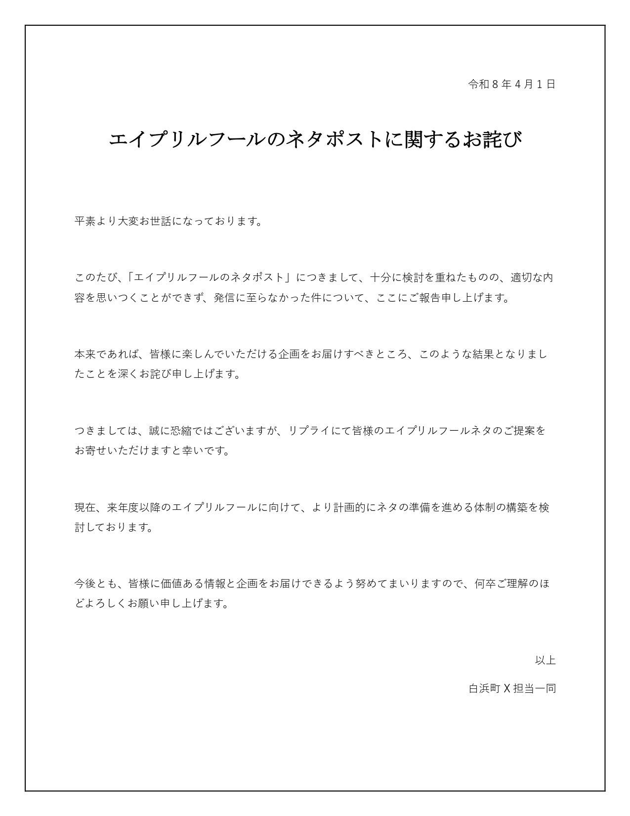 何も思いつかなかった事を謝罪する白浜町