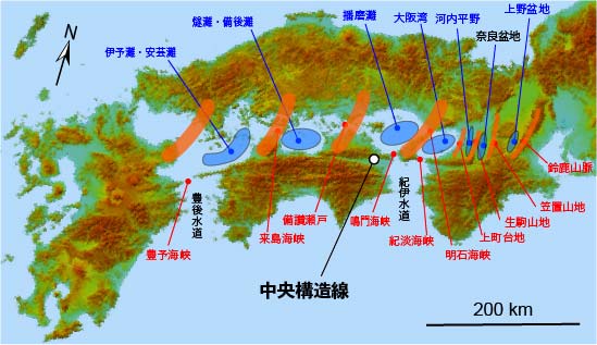 でも瀬戸内から大阪奈良盆地とか横にズレてシワ状に地形が歪んでいってて地図見てておもろいな