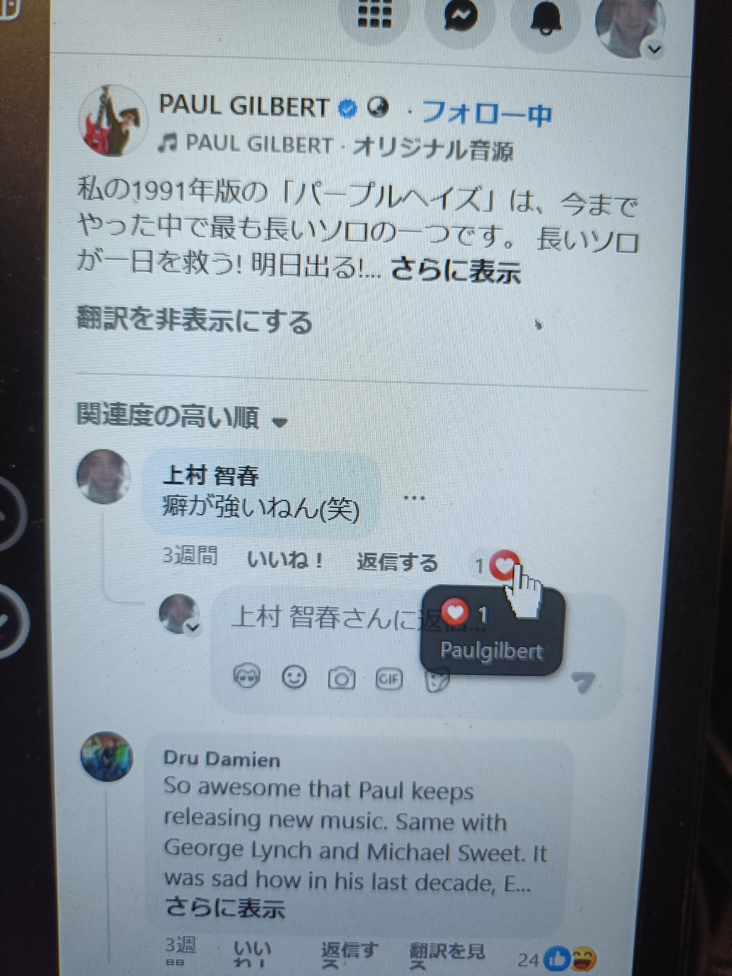 ポール・ギルバートにこう書いたら超いいねされたの巻( ̄・ω・ ̄)